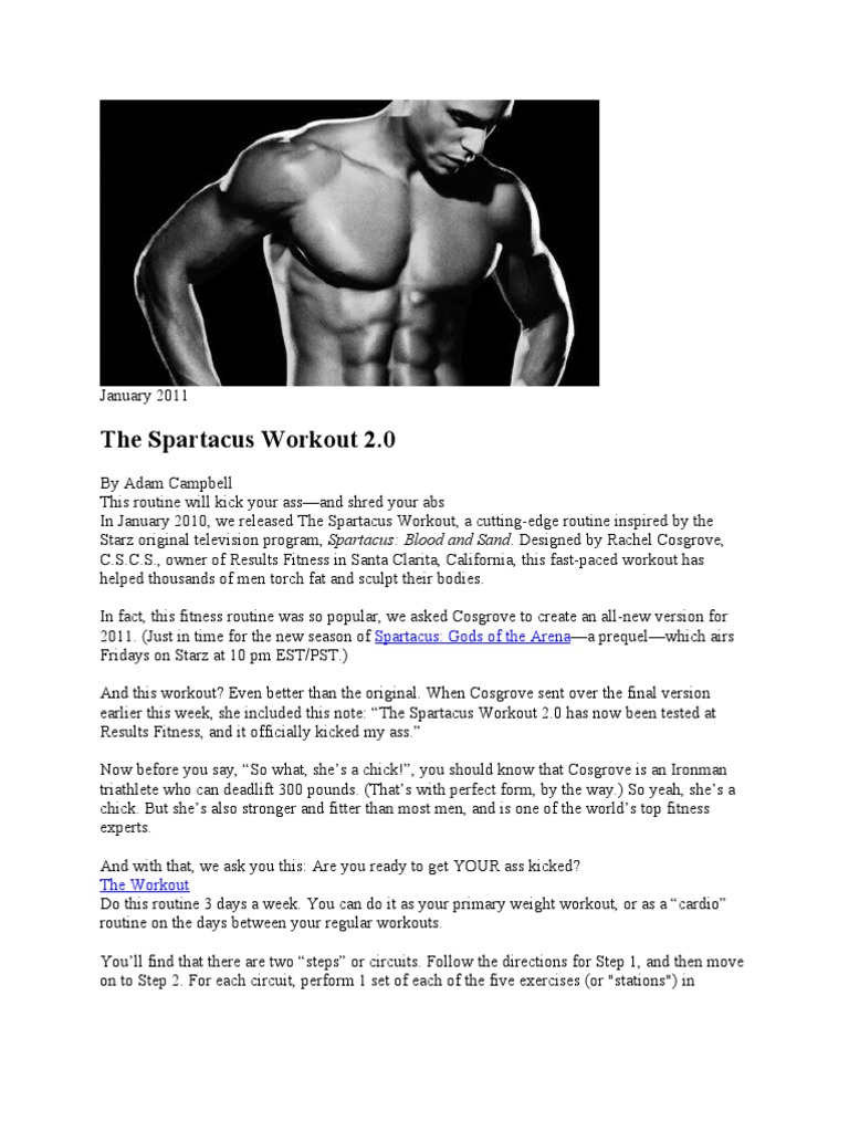 Spartacus Workout 2.0 | Human Anatomy | Recreation from imgv2-1-f.scribdassets.com How badly do you want to have that ripped physique? Spartacus workout plan 4 11 this spartacus workout plan is the real spartacus workout routine that was used by the cast of the starz spartacus: This article reviews an intense new workout plan focused on getting in gladiator shape. It uses triple sets to fire up your metabolism and melt fat at a blistering pace. That's when jim fixx's the complete book of running was published. These spartacus workouts weren't created for the. Documents similar to mh spartacus workout poster. Fitwirrs 5 workout posters pack dumbbell exercises stretching interesting spartacus 5.0 workout updated daily.